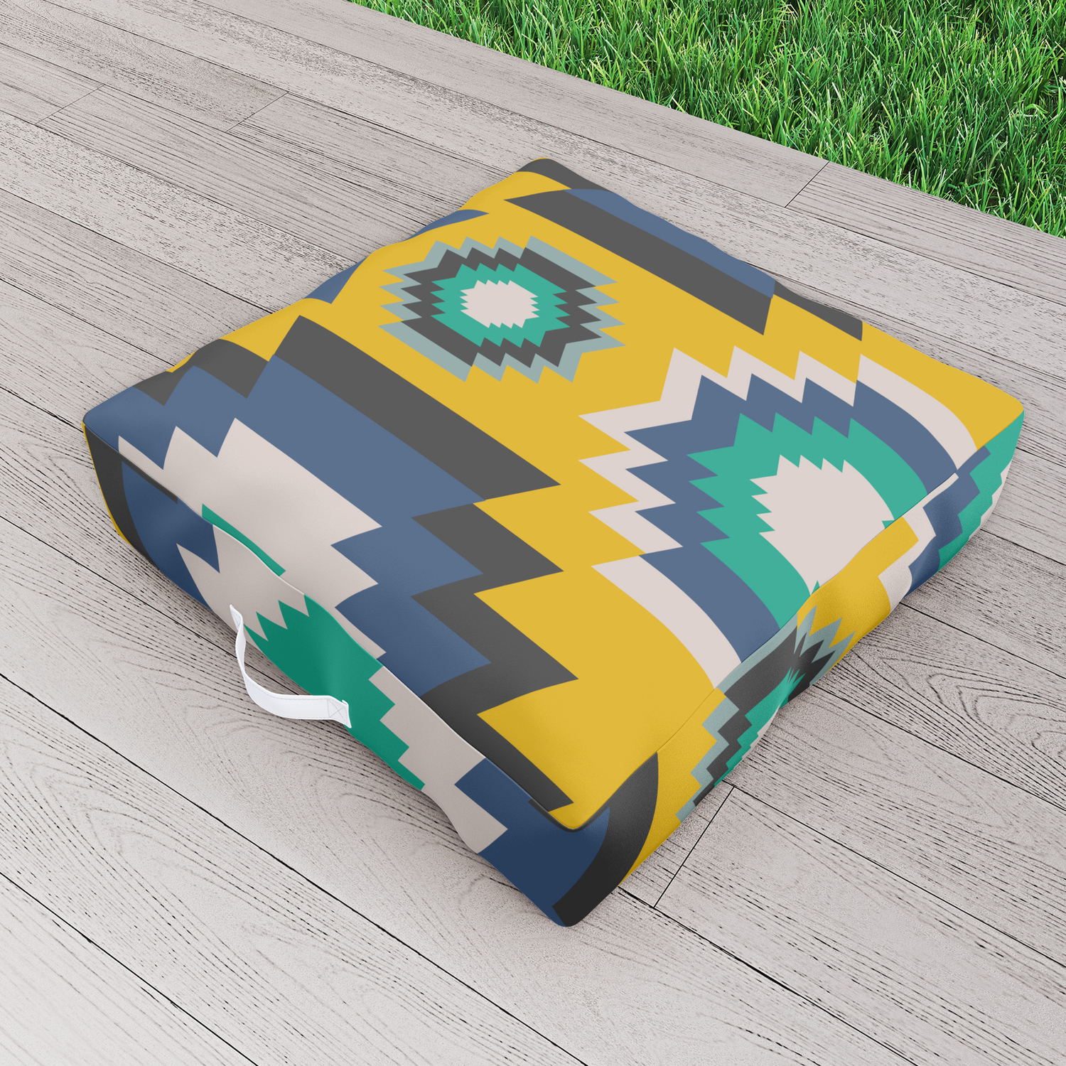 Ethnic In Blue Green And Yellow Outdoor Floor Cushion By Cocosabstractions