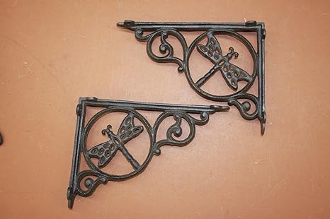 Farmhouse Kitchen Open Shelving Dragonfly Design Wall Shelf Brackets Cast Iron 8 7 8 Set Of 2