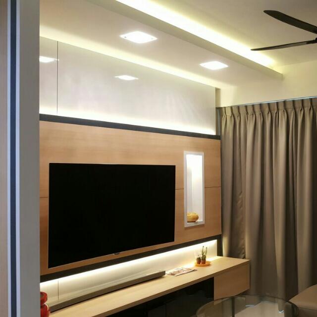 Hdb Maisonette Tv Feature Wall Refreshed With Contemporary